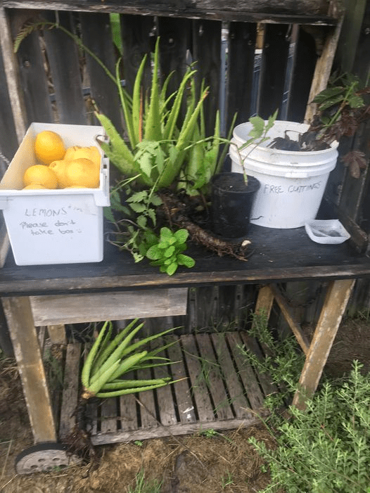 A basic swap cart set up to assist the community with sharing and redistributing excess produce and edible or native plants. Swaps of garden items such as plastic pots, pest exclusion bags or cleaned plastic produce containers are welcomed too. Please no sharp objects, no thorny or toxic or sap producing plants, and no breakable objects like glass and ceramics as we wish the cart to remain a safe space for all.