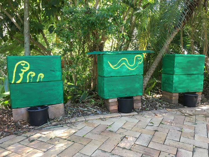 Worm juice is a key fertiliser in our garden. We have three worm farms in a nice shady spot in the garden to recycle fruit and vegetable scraps from the kitchen.