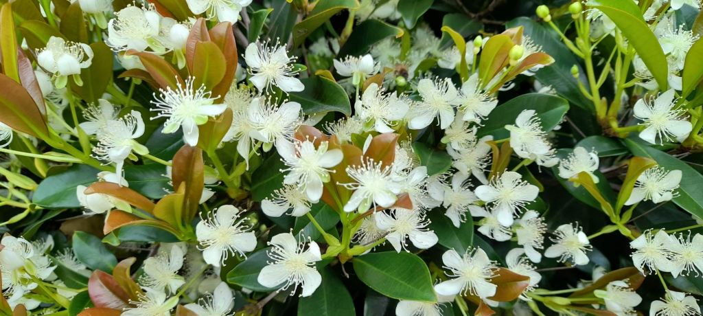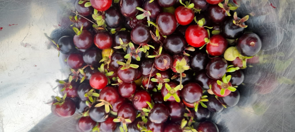 Grumichamas come in either black or yellow (orange). They are the equivalent of temperate cherry and are just as delicious. You will find them in full flower across Queensland during spring. Interestingly, only the branched that receive at least 80-100% sun will flower and fruit, so a sunny position is essential. The flowers are small and creamy white in colour, with a very delicate, faint perfume. Like jaboticabas these plants flower and bear fruit in quick succession, taking only a few weeks to develop if the conditions are right (plenty of sun and rain).