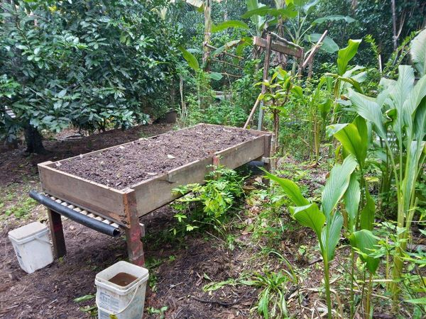 Using a tin floor in your raised garden bed allows for the water to be collected in a bucket underneath (shown bottom left in the above picture). To make the most efficient use of water and nutrients simply pour the collected water back over the bed.