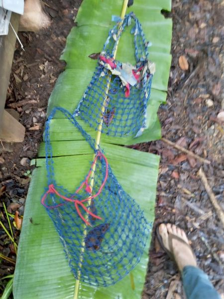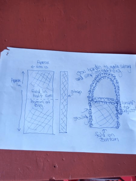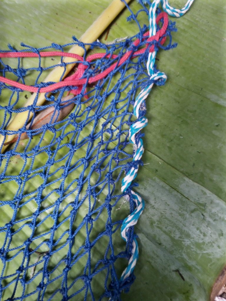 This is one of our homemade large produce harvesting bags (obviously small berries would fall through the holes but this is great when citrus is in season). Made from an old trawler net which you can buy cheaply second hand (or unfortunately find washed up on the beach). It’s a good simple sewing project for kids too as it’s very straightforward and quick to create and you can decorate it in so many ways! Strong, durable and super easy to hose off when it needs a clean!